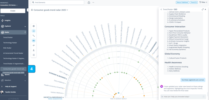 - Segment: The Innovation AI consults the results and uses them to build a categorization (=segmentation of the radar).